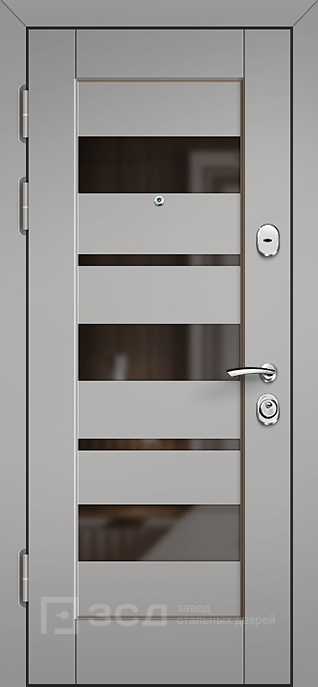 Изготовленная по индивидуальным размерам, эта модель сочетает в себе высокую прочность, теплоизоляцию и стильный внешний вид. Конструкция из цельногнутой оцинкованной стали толщиной 1,5 мм с двумя профильными ребрами жёсткости и противосъёмными штырями гарантирует надежную защиту. Входная дверь с терморазрывом на заказ №55 отделана плитами МДФ с обеих сторон, дополнена аккуратным молдингом и выполнена с тройным магнитным контуром уплотнения. Терморазрывы в коробке и полотне предотвращают промерзание, а утеплитель из пенопласта повышенной плотности удерживает тепло и снижает уровень шума. Подходит для установки в любых условиях, устойчива к перепадам температур и может быть дополнена стеклопакетом, декоративными элементами или современными замками по выбору владельца.
